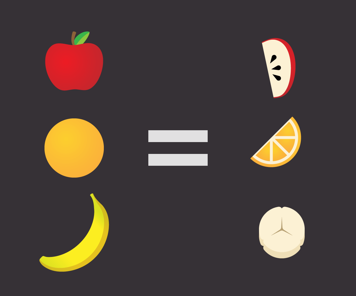 فرض کنید میوه های سمت چپ همان آیتم های آرایه هستند و ما قصد داریم تک تک آیتم های آرایه را قاچ کنیم. یعنی عمل قاج کردن را برای تک تک ایتم های آرایه انجام بدیم (تکرار کنیم).