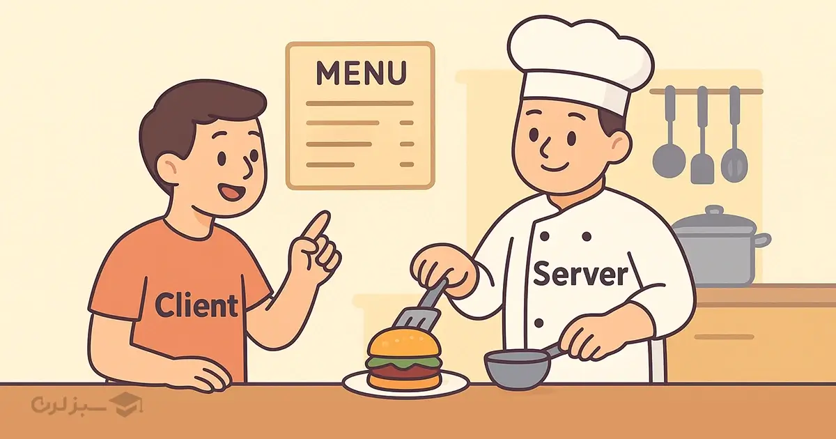 اگر بخواهیم به زبان ساده بگوییم کلاینت چیست، آن را مانند یک مشتری در یک رستوران در نظر بگیرید. شما (مشتری یا کلاینت) غذایی را از منو سفارش میدهید (ارسال درخواست) و آشپزخانه (سرور) آن را آماده کرده و برای شما میفرستد (ارسال پاسخ). کلاینت همان دستگاه یا نرمافزاری است که این درخواست اولیه را آغاز میکند.